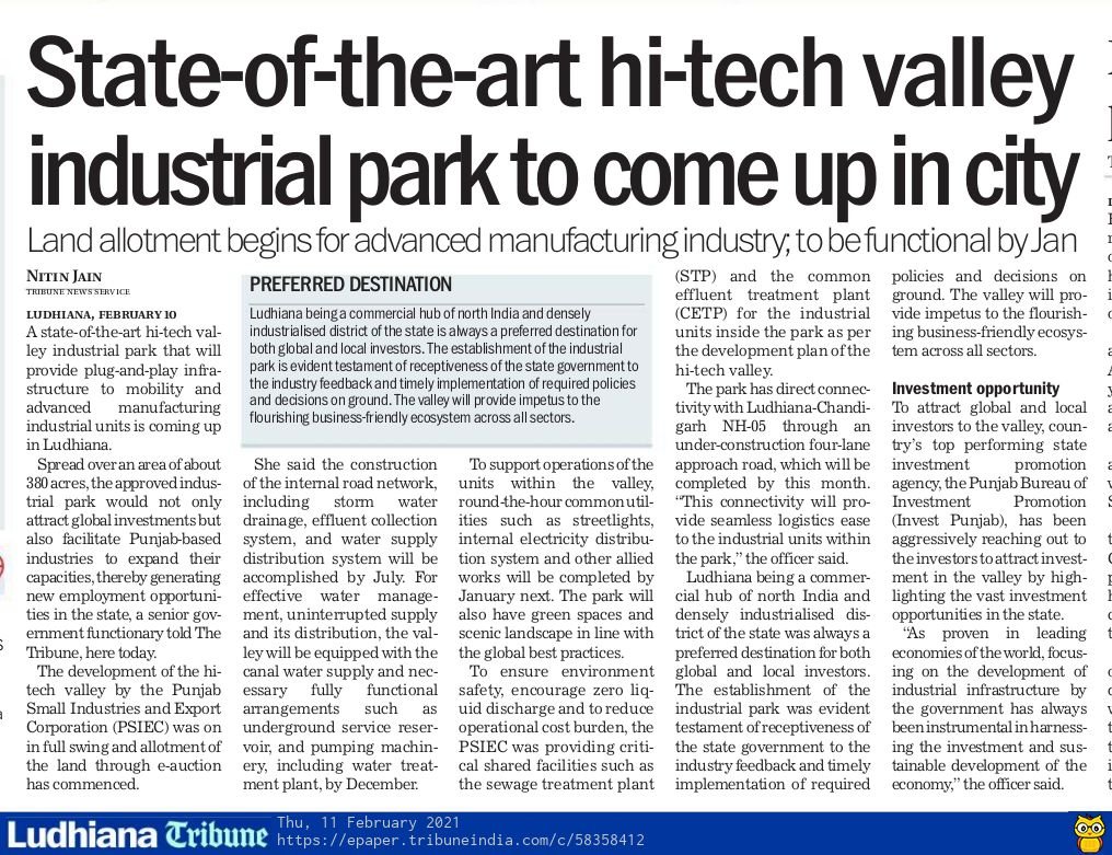 Invest Punjab On Twitter Spread Over An Area Of About 380 Acres The Approved Hi Tech Valley Industrial Park Is A Big Attraction For Global Investments Amp Will Also Facilitate Punjab Based Industries To